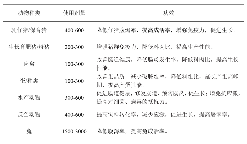 能通過激活p38 MAPK和NF-κB信號通路增強巨噬細胞吞噬能力,提高血液中淋巴細胞增殖率;增強腸道黏膜的免疫功能,包括提高空腸黏膜中IL-1β、IL-8、IL-10、sIgA的含量;降低促炎因子TNF-α、IL-1β和IL-6等的表達,提高抗炎因子IL-10的表達,提高血清中IgA、IgG和IgM含量;能顯著增強動物細胞免疫與體液免疫功能,從而提高抗病力。